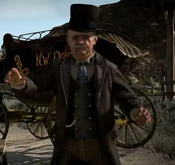 - Red Dead Redemption has one of these in the form of Nigel West Dickens, a major character, even mentioning the trope by name. He handily provides the page image.