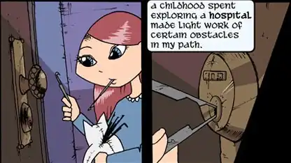 - She does quite a bit of snooping even without lock-picks, including, once, fooling a guard-bot into believing she was a robot using a headband with antennae and "I am a robot." It worked. Robots in Gunnerkrigg Court are notoriously gullible.