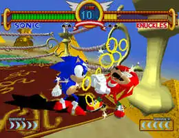 Sonic The Fighters a.k.a. Sonic Championship is a 1996 arcade Fighting Game, starring the ever-lovin' cobalt-furred insectivore and his pals.