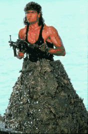 - Hot Shots! Part Deux had that scene where the hero became nearly buried in his spent shells. Played for Laughs, of course.