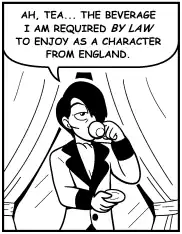 - In Girl Genius, despite being (presumably) German or Austrian (going by the names), Gil built a construct when he was eight that makes tea (and is very concerned about Agatha stealing his job), and employs a British manservant and spy who knows how Gil takes his tea. Agatha and the other inhabitants of Mechanicsburg seem to prefer coffee.