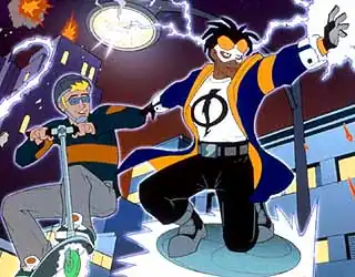 Based upon the Milestone Comics series simply titled Static, created by Dwayne McDuffie, and one of the rare instances where a comic book's creator is also the main creative force behind the Animated Adaptation. The main character, Virgil Hawkins, is the son of a man who runs a youth center. When a bunch of experimental gas explodes, it grants him and some other teenagers a wide variety of offbeat superpowers (it also mutates various animals and at least one fungus). This event is later referred to as "the Big Bang" and the mutant metahumans are known as "Bang Babies," as the Big Bang was the start of their new lives.