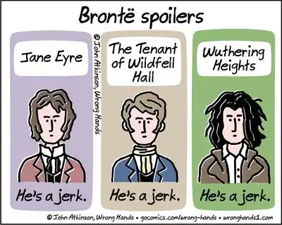 - Jane Austen: A gentlewoman sooner or later falls in love with a man but can't marry him because he's engaged to someone else/he's in love with someone else/etc. Often there are cads to tempt her as well, but ultimately she ends up with the good guy who won't steal all her money and/or abandon her somewhere. (The web comic Wrong Hands lampshades this in the Jane Austen board game.)