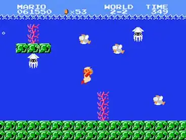 - Super Mario Bros (NES): In the underwater levels. In the land levels, bodies of water work just like Bottomless Pits (There are more in abundance in Lost Levels).