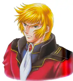 Male protagonist of the super route, Brad's a hot-blooded red-head who fights under the style Bukki-Hakken Ryuu under Master Viror Sunder, as well as rival Katz. He seems to lean more on the idealistic side compared to the more pragmatic Katz. When Viror vanishes alongside with a man riding a Gespenst MK III - HAAAANG ON A MINUTE... - he and Katz swore to continue their master's teaching and join forces with the Londo Bell to free the Earth from alien liberation. However, the two rivals' point of view clashes and they separate.