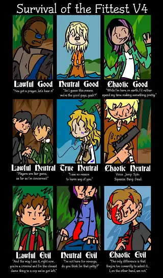 - Genre Busting: In many ways; on one hand, like the source material, it is pretty difficult to define what kind of genre it is. On the other, with so many different writing styles across so many characters in one place, the final product of Survival of the Fittest is downright impossible to define as a single genre.