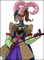A brutish bull Gajuma who hides an evil, manipulative intellect. He possesses the Force of Magnet and is partnered with Saleh.
