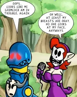 - In this Femmegasm strip, Grimlock tears off Fizzy McBeer's face to prove he's as good as Optimus Prime.