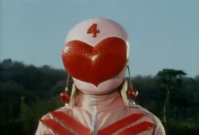 • Also, occasionally, a female ranger's helmet's had earrings. This stopped with Maskman and Fiveman, but it had been there since the beginning with Goranger (although, at least then, her earrings were bombs, so they were at least useful.) And then, there's Battle Fever J where Miss America had a feathered blond hairdo on top of her helmet.