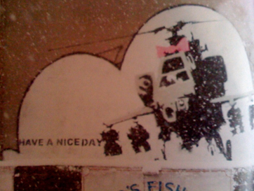 • Banksy's Happy Chopper piece, painted on a wall in Shoreditch in 2003 (the special effects were supplied by deep fat fryer).