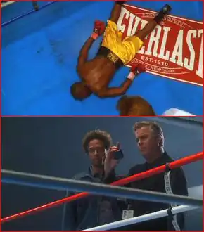 - In which they attempt to knock out a punch drunk fighter in his locker room. After they hit him on the head with a weight he suddenly becomes (temporarily) lucid, saying things like "I intend to aggressively attack my opponent at the outset to achieve a sudden victory." Then they hit him again.