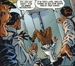 - In Watchmen Rorschach kills two inmates who were trying to kill him using toilets, then makes a crappy pun about disposing of waste in the toilet.