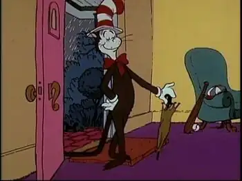 - When the mother returns, she notes that she saw the Cat in the Hat passing by, with said MacGuffin in his hands. It's assumed that the item was actually his moss-green colored umbrella. Which would explain the expression of the kids when they hear it.