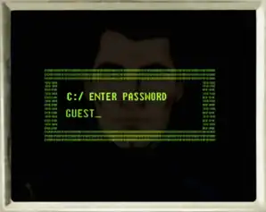 A related trope in fiction is to have the password entry plain and clear - on the screen - for all to see. No sense in bleeping out the characters with asterisks or a mute prompt. Of course, scriptwriting-wise, a particularly amusing password can elicit a humorous response from the audience this way without dialogue exposition.