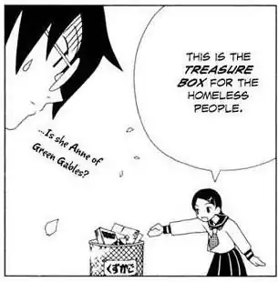 - Memetic Bystander "Poor-chan" from Puella Magi Madoka Magica is typically portrayed by fandom as the comically extreme, oblivious version, who lives in a cardboard box and can't afford a computer for her classes, yet is always writing cheerful letters to her "Mother in Heaven".