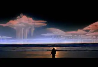 - Book Ends: The film begins with a slow shot of a sunrise. The film ends with, well, a planetrise - yeah, that enormous ringed world on the cover finally makes its appearance in the film's closing shot.