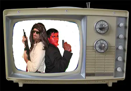 "He's an ungodly Amish farmboy searching for his wife's true killer. She's a disco-crazy belly-dancing stripper who dreams of becoming Elvis. They fight crime!" |