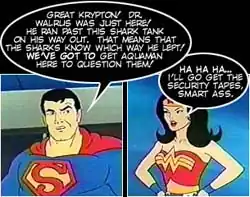 Boy, isn't that guy's power useless. Take Aquaman, for instance. But wait...the villain's lair has an underwater base! That's cool, Aquaman might have a chance of winning. And what, his death trap dumps the hero into a pool of sharks? No problem, with his mighty powers Aquaman can easily overcome this convenient obstacle. And it turns out his doomsday machine is powered by telepathically controllable sea plankton or Psycho Electric Eels...