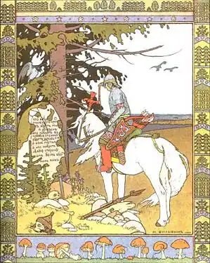 - In Tsarevitch Ivan, the Fire Bird, and the Gray Wolf, the three princes each come upon a stone with three warnings; two decide to chose none, and turn back, yet Prince Ivan presses on.