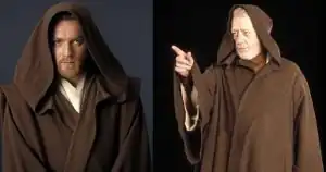 - The Star Wars prequels cast Ewan McGregor as the young version of Obi-Wan Kenobi, a role originated by the late Alec Guinness. Most of the other characters who appear in the original trilogy, however, are played by the same actors, either because they're voiceover roles or because playing the older version involved heavy makeup that disguises the fact that the actor has aged in the opposite direction from the character. Anakin/Darth Vader has the record for most actors: There's child Anakin (Jake Lloyd), young adult Anakin (Hayden Christensen), suit Vader (David Prowse in the original trilogy; Hayden Christensen in Revenge of the Sith), voice Vader (James Earl Jones), fencing stunt double, and de-helmeted Vader at the end of Return of the Jedi (Sebastian Shaw, who also played his Force ghost form later.)