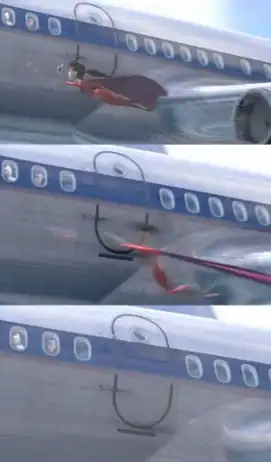 Might happen to some superheroes that fly a little too close to a plane. Especially when wearing a cape.