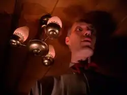 - Large Ham: Justified (sort of) in that he is not played by a professional actor but by a set dresser who happened to find himself accidentally foreshadowed in certain scenes.