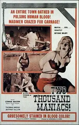 Two Thousand Maniacs! was remade in 2005 as 2001 Maniacs, starring Robert Englund. A direct-to-video sequel, entitled 2001 Maniacs: Field of Screams (which replaces Robert Englund with Bill Moseley), was released in 2010. It had the town going on a road trip due to the fact that there weren't enough fresh Yankees coming into town for them to kill, and coincidentally running into the cast of a reality show centered around wealthy socialites Rome and Tina Sheraton.