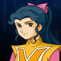 She is a kunoichi (female ninja) and the 18th heir of the Koga-ryu ninja. Young, slim, and beautiful, Megumi received special training during her childhood. By the age of 13, she already possessed extraordinary skills and lightning reflexes. She also learned the gentle arts from her mother, becoming quite able to pull the Yamato Nadeshiko card whenever it was needed. Through her mother's guidance, Megumi became a person with a calm yet alert disposition. Joining the Voltes V Team, she was the voice of reason among the male members, especially whenever Ken'ichi and Ippei were about to clash during personal conflicts. Her cool demeanor and uncanny skills qualified Megumi as the fifth (and only female) member of the Voltes V team. Her uniform was yellow with pink accents. Voiced by Miyuki Ueda, who also played as the voice of Chizuru Nanbara in Combattler V, as Erika in the Daimos series, and as Marie Antoinette in Rose of Versailles; the latter was another series which Nagahama, the creator of Voltes V, was one of the contributing directors. She pilots the Volt Lander (Feet).