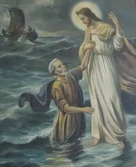 The most well-known water-walker is probably Jesus Christ in the New Testament, who casually walked out over a raging sea (a feat few other water-walkers have ever matched -- Jesus Was Way Cool indeed) to meet his disciples' boat. Disciple Peter followed suit, but his lack of faith caused him to sink beneath the water after a few steps and he had to be saved by his master. Despite its Biblical origin, the trope is usually executed without an especially strong Faux Symbolism feel to it, as the primary objective is, once again, about looking cool. This doesn't stop the occasional Baptist-Fundamentalist Media Watchdog from complaining about people other than Jesus being depicted as doing such a thing, despite that Peter walks on the water to Jesus almost immediately after seeing him.