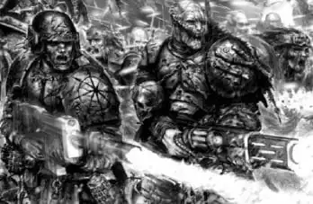 The Lost and the Damned is a curious army: despite being the most commonly encountered form of Chaos fought in the game's lore, players cannot actually field it in tournaments, nor do they have a fully-developed model range. It received an army list during the previous Eye of Terror campaign, but unfortunately this has not been updated for the most recent edition and it is classified as an unofficial army. The Lost and the Damned play similar to the Imperial Guard, and indeed feature traitorous guardsmen as troop choices, but lack the loyalists' volume of heavy weapons, armor, or even morale. To make up for this, mobs of low-cost mutants and other rabble can be used to soak up enemy fire or swamp troop formations, while other Chaos abominations can serve as assault troops. Overall, this makes them a gimped version of the Imperial Guard, but a characterful army nonetheless and a force of extreme (evil) underdogs.