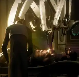 - The trope picture comes from the 2011 game Deus Ex: Human Revolution where bio-mechanical augmentation is a state of the art but highly controversial science. The guy being rebuilt in the image is protagonist Adam Jensen, chief of security at one of the leading augmentation corporations, who was severely injured in a brutal and highly coordinated attack on the company's headquarters; Adam's employer augments him in order to save his life. It turns out later on that Adam was genetically engineered to be able to accept augments without needing constant dozes of the drug Nueropozyne to prevent implant rejection, and his employer took advantage of this to stuff him with every piece of advanced military hardware they had to make him into a killing machine.[2]