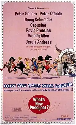 What's New, Pussycat? is a 1965 comedy film directed by Clive Donner and starring Peter Sellers, Peter O'Toole, Romy Schneider, Capucine, Paula Prentiss and Ursula Andress. It was Woody Allen's film debut, as well as his first produced script.