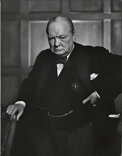 British Prime Minister, 1940-1945, 1951-55. Helped win World War II, then won a Nobel Prize for writing about it in a six-volume Doorstopper.