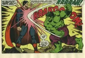 - Note that in the picture above (which comes from the second Superman versus Spider-Man special) Superman had already been knocked around by the Hulk, but decided to stand his ground using his full power to calm the monster. The story hints that if he hadn't succeeded, the Hulk (whose strength increases the madder he gets) would have eventually overcome even that.