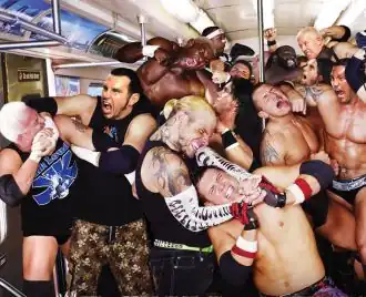- Transmetropolitan. Halfway justified because the main cast are two halfway psychotic journalists/bodyguards, a bunch of politicians running for president, an editor-in-chief, and a Cyberpunk Hunter S. Thompson.