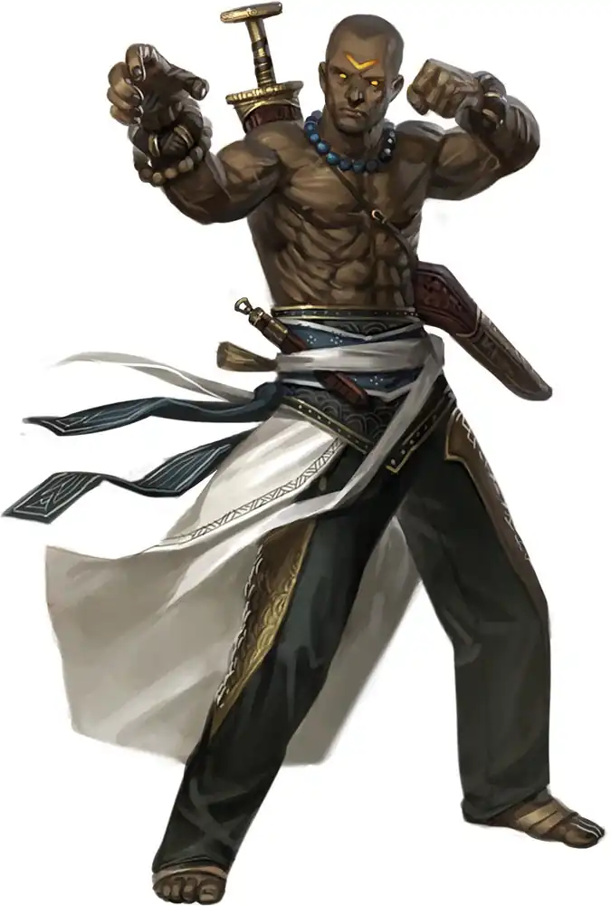 Weapon and Armor Proficiency: Warrior monks are proficient with dagger, great cutlass, javelin, kama, moon staff, nunchaku, ono, overlayed claw, quarterstaff, sai, Sling, shuriken, and siangham.