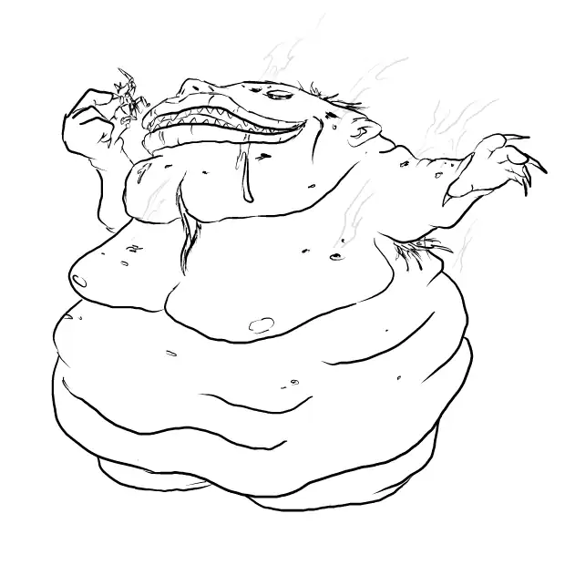 The Great Mon Gorge is what they call this god. Given immortality by Lady Nocrat his mind has long since been consumed by the body venerated today. When the Lady was approached by a representative of a local Baron that had discovered her secret she was furious, however she accepted an offer to meet the Baron, with the intention of killing him upon arrive. When she met the Baron she was taken aback by the girth of the man before her, the Lady was convinced (through no small part of the bribe she received) that the barons goal was to simply expand his diet into a more fertile source. Being known as a glutton it wasn't a stretch. The Lady turned the Baron night and he immediately fled the confines of his bed, which due to his weight he was not able to leave for some years. He fled into the night eating every mortal soul he came across, his hunger even drove him to eat during the day, his massive girth burning in the sun, there was just far too much tissue for the sun to burn him to death. One day the behemoth found a fertile stretch of farms, and spend weeks rolling back and forth between them, until a gorge was formed from his massive rolling, a gorge he can still not escape to this day.