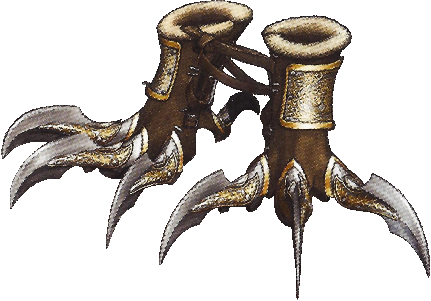 Weapon (footwear), rare (requires attunement) An enchanted pair of leather shoes that would be very comfortable to wear if it weren't for the giant metal blades protruding from each toe. These shoes were designed a very long time ago to enhance the use of talons as weapons of defense. In the Elemental Plane of Air, aarakocra soldiers are commonly seen with this dangerous footwear. Strange Fit. This magic weapon is treated as a weapon worn on the feet. However, attacks with your Talons are still treated as unarmed strikes and creatures that wear the Talonsbane are still treated as being barefoot. This weapon can also only be worn by creatures that have talons instead of normal humanoid feet. Raptor's Grasp. While you are wearing the Talonsbane, unarmed strikes with your Talons deal 2d6 slashing damage. This damage is treated as magical damage. In addition, the attack and damage rolls for your unarmed strikes with Talons are calculated with your Dexterity modifier instead of your Strength modifier. You cannot attack with your Talons more than 3 times per turn while wearing Talonsbane. Blinding Strike. If you make an unarmed strike with your Talons, as a bonus action you can also choose to not apply the extra damage from Raptor's Grasp. If you do so, you can choose to have the creature you hit with an unarmed strike make a Constitution saving throw or be blinded until the end of their next turn. The DC for this saving throw is equal to 8 + your proficiency bonus + your Dexterity modifier. |
