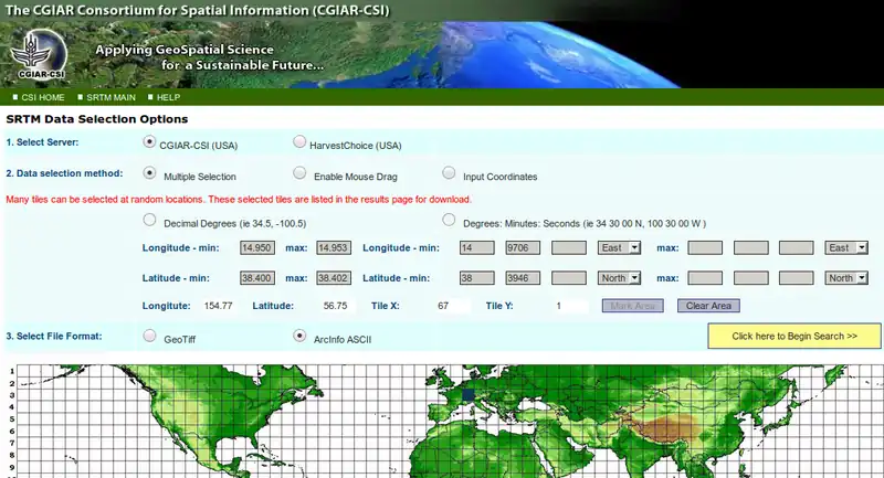 | CGIAR-CSI SRTM | 90m | Allows finding and exporting squares with 90 resolution for the whole earth. | ||