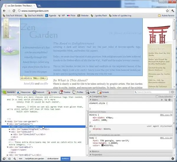 - Use the DOM tree to the left for navigating in the HTML structure. This also will highlight an element in the web page