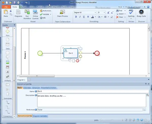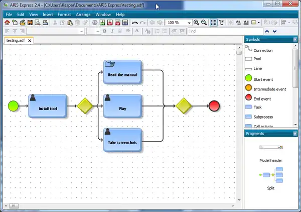 A typical example of simple modeler (a BPMN-compliant drawing tool) is ARIS Express:
