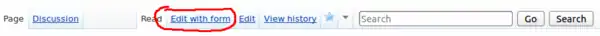 Unlike in a traditional wiki page, editing is done through forms, using the Edit with form button that appears on top of wiki pages that use Semantic Forms.