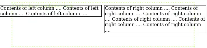 This example may not do what we want. Each of the two left_col and right_col boxes are positioned with respect to the body element, i.e. borders overlap. In order to position them with respect to the container element, we must use the code of the next example.