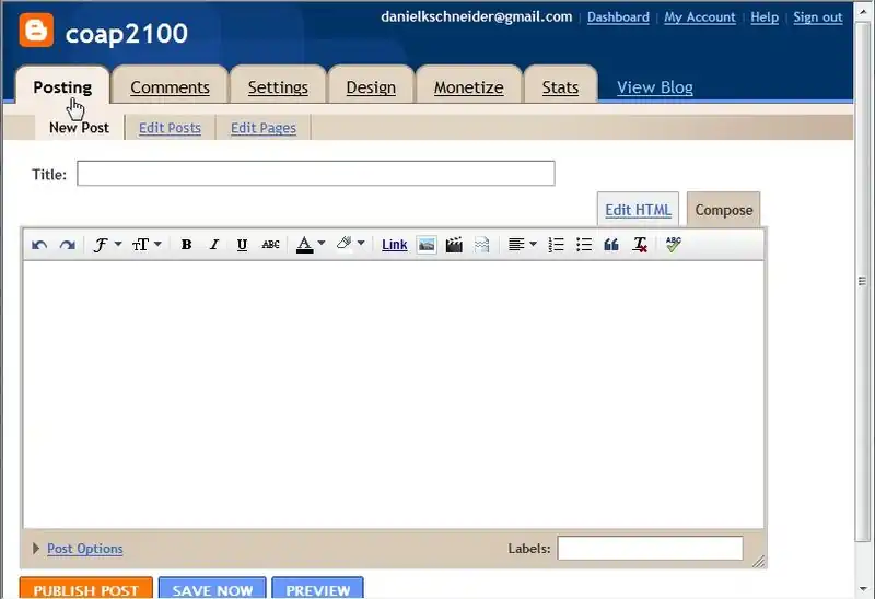 You then can change fonts and colors, or pick a new template before you do this. Advanced users can click on "Edit" HTML to define a new template, before you start playing with HTML code, read Can I edit the HTML of my blog's layout?