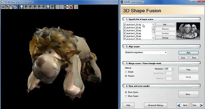 Go to 3D Shape Fusion screen (next button)