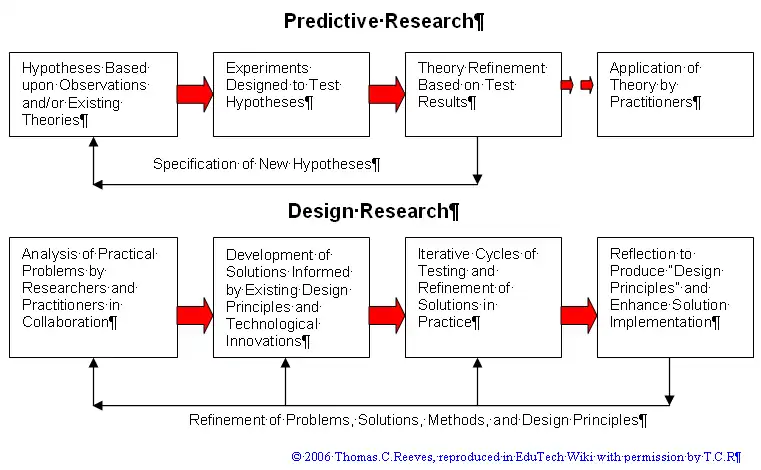 Reeves (2000:9, 2006) draws a clear line between research conducted with traditional empirical goals and that inspired by development goals leading to "Design-principles".