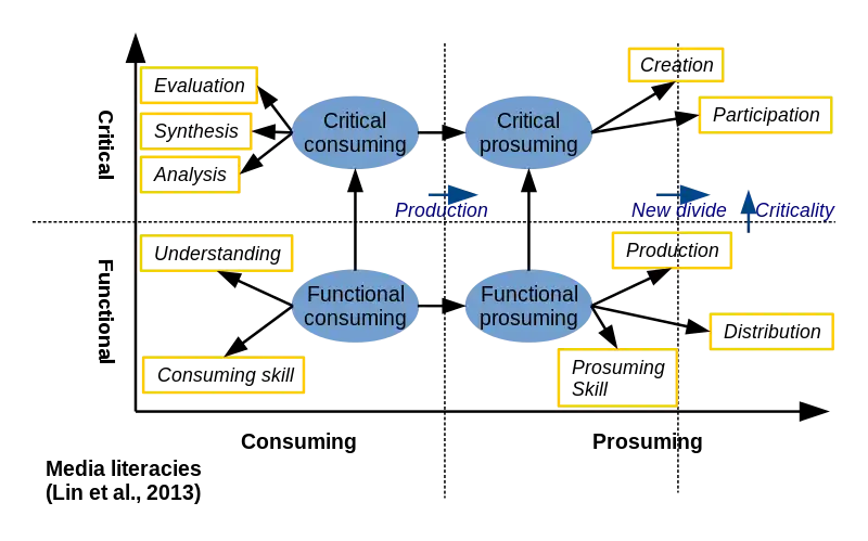 - ↑ Tzu-Bin Lin, Jen-Yi Li, Feng Deng, & Ling Lee. (2013). Understanding New Media Literacy: An Explorative Theoretical Framework. Journal of Educational Technology & Society, 16(4), 160–170. Retrieved from http://www.jstor.org/stable/jeductechsoci.16.4.160