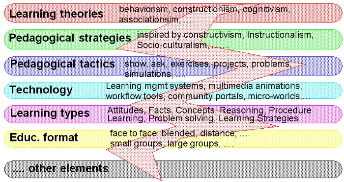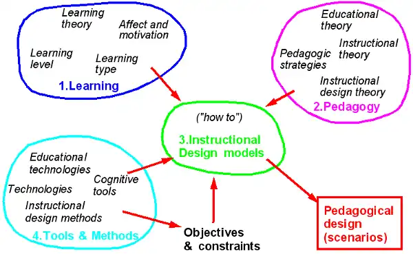 Even from a pure "engineering perspective," it doesn't make much sense to talk about Educational Technology just in terms of Instructional design models or instructional design methods. An instructional designer also feels concerned by more fundamental disciplines like general learning theory or pedagogical theory. These theories provide interesting insights on issues like the relation between learning type or learning level and appropriate pedagogic strategy, how affect and motivation may influence the learning process, what multimedia design can learn from theories on human information processing or cognitive load, why metacognition and collaborative learning is important etc.