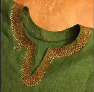 | Needle | Small, slender piece of steel with a hole for thread and a point for stitching fabric. A machine needle differs from a handwork needle; the machine needle's eye is found at its pointed end. Machine embroidery needles come with sharp points for piercing heavy, tightly woven fabrics; ball points, which glide between the fibers of knits; and a variety of specialty points, such as wedge points, which are used for leather. | needles for embroidery |