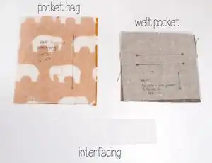 | Welt | A strip of material seemed to a pocket opening as a finishing as well as a strengthening device; a covered cord or ornamental strip sewn on a border or along a seam. |